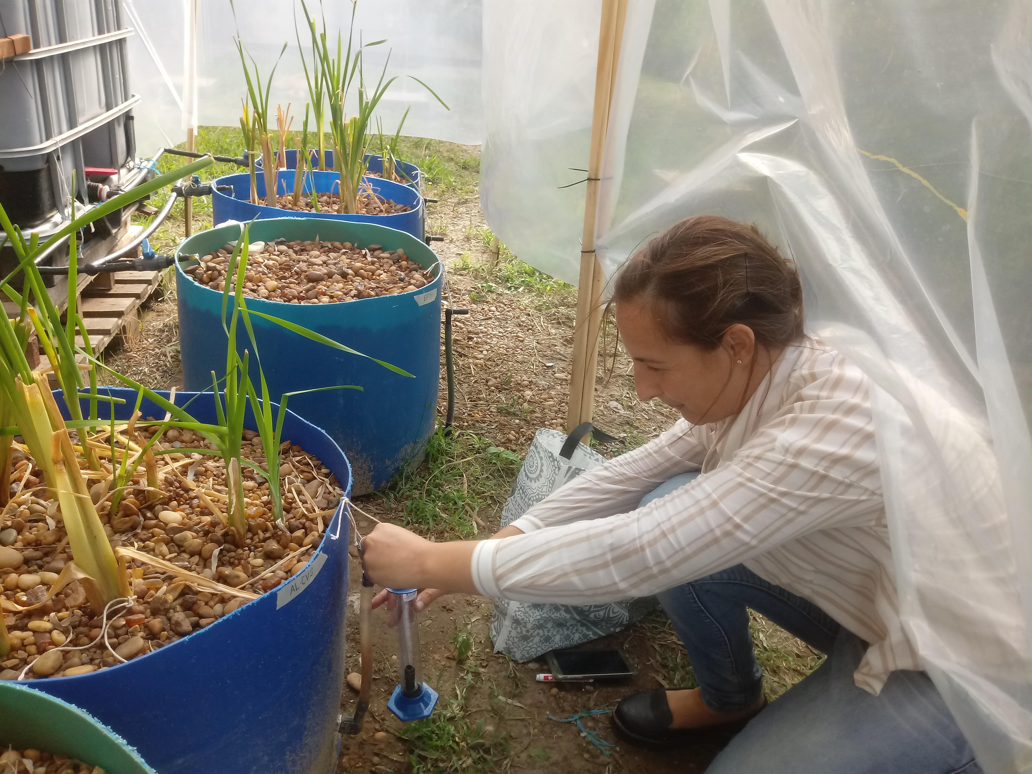 las pruebas de adaptación de la vegetación al efluente a tratar, las