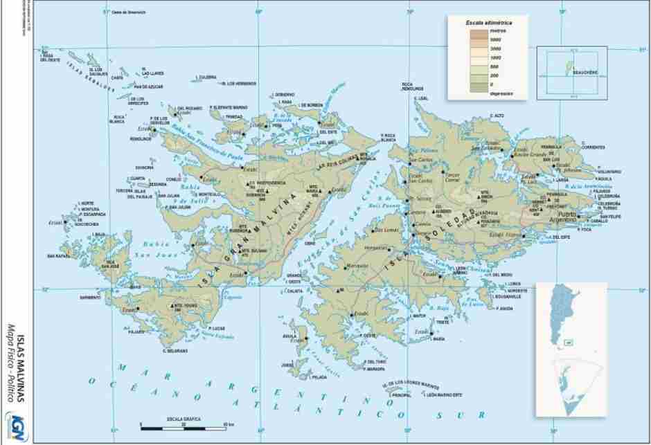 4- Mapa físico político de las Islas Malvinas.