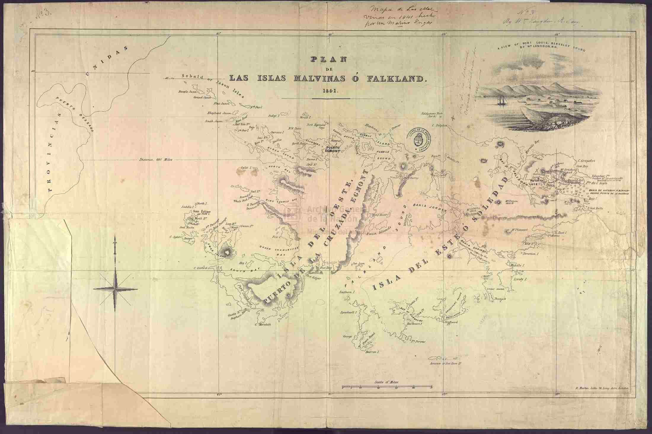 3- Mapa titulado Plan de las islas Malvinas ó Falkland.