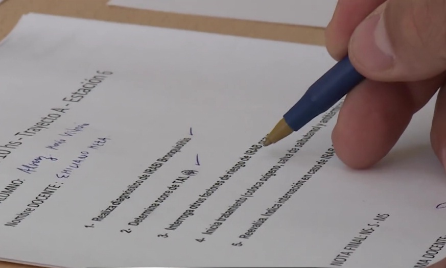 debía demostrar en cada estación su capacidad para realizar el examen